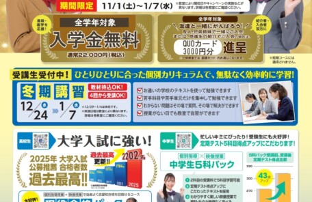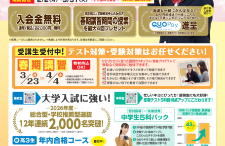 教室長が日常の学習指導から進路のご相談まで対応致します。3人に1人はご紹介での入塾です。無料の自習スペース完備により毎日、通塾できます。宿題、学習の進行状況を随時チェックして学習効率をぐんとアップさせます。